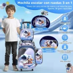 کیف و کوله پشتی مدرسه چرخدار طرح فضانورد همراه با کیف غذا و جامدادی کد1212- ست کامل کیف مدرسه شامل چرخدار، کیف غذا و جامدادی