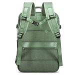 در پشت کوله یک بند نایلونی طراحی شده که امکان قرارگیری کیف روی دسته چمدان را فراهم میکند. این ویژگی حمل آن در سفرهای هوایی را بسیار آسان میسازد.