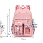 کوله پشتی دخترانه سبک مدل چهارخونهای با عروسک آویز ??