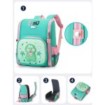 کوله پشتی وارداتی دایناسور شکمو مناسب برای کودکان مهد کودکی و پیش دبستای است که رنگ سبز زیایی دارد. این کوله پشتی بصورت صندوقی باز میشود و دو جیب قمقمه در طرفین کوله و یک جیب در جلوی آن دارد. جنس پارچه برزنتی با کیفیت و دوختی دقیق دارد.