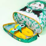 کوله پشتی کودکانه ضد آب مخصوص استخر و ساحل و استفاده روزمره است که با طرح های جذاب کارتونی و رنگ های زیبا هر کودکی را خوشحال میکند. پایین کوله محل نگهداری دمپایی و کفش است و داهل آن فضای نگهداری مایو شنا و عینک و حوله و لباس ها و وسایل شخصی است.