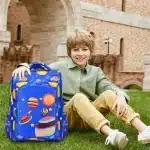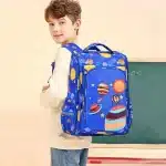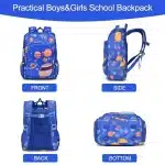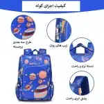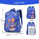 کوله پشتی مدرسه طرح سیارات آبی رنگ کد 00333کیف خارجی صندوقی مناسب برای دختران و پسران با طرح سیارات فضایی در اندازه حدودی 38 در 28 در 18 سانتیمتر و برای استفاده در مدرسه و سفر مناسب است.